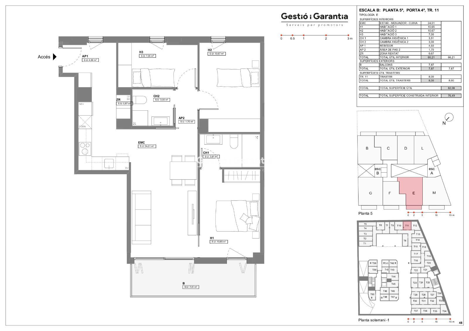 , 3 habitacions i 2 banys, Garatge i Traster.